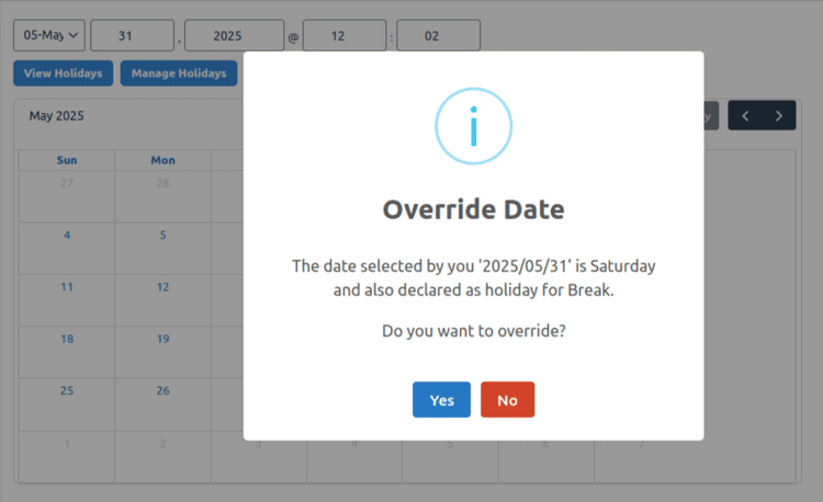 - Add any custom days off in seconds, festivals, snow days, even that random Tuesday your institution closes