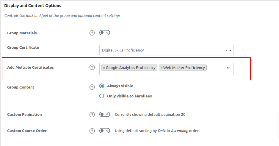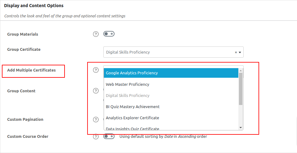 5. Once you have added a certificate in GroupCertificate field you will get an Add Multiple Certificates field where you can add additional certificates to the course