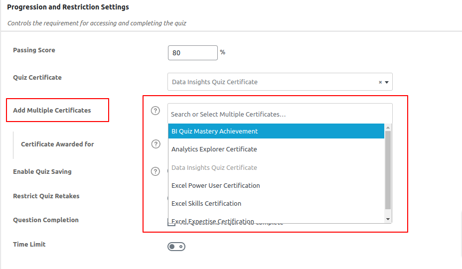 Add Multiple Certificates to a Quiz