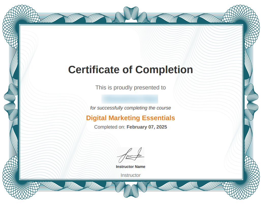 - In this mode, shortcodes within the certificate will be replaced with static sample data. Example, [courseinfo show=”course_title”] will replace with {course_title} “Digital Marketing Essentials”