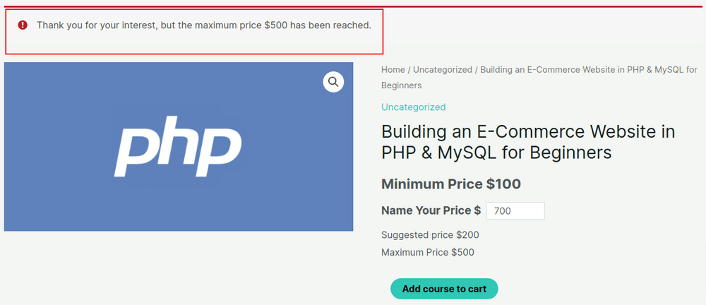 This setting lets you display the “Name Your Price” on the course page. It allows customers to buy the course directly from there, without having to go to the WooCommerce product page. When they click to buy, the course is added straight to the WooCommerce cart.