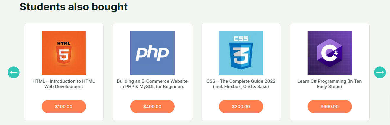 Let your users know that the course they are viewing, is often purchased in combination with another course (see an example below).