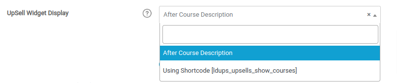 UpSell Widget Display: This setting helps you select the way in which you want to show your UpSells on the course page. The default setting is “After Course Description”. This will show UpSells widget just below the course description. If you want to show UpSells at a different position on the course page, then you can choose “Using Shortcode” option. You can copy the shortcode and place it anywhere on the LearnDash course page.