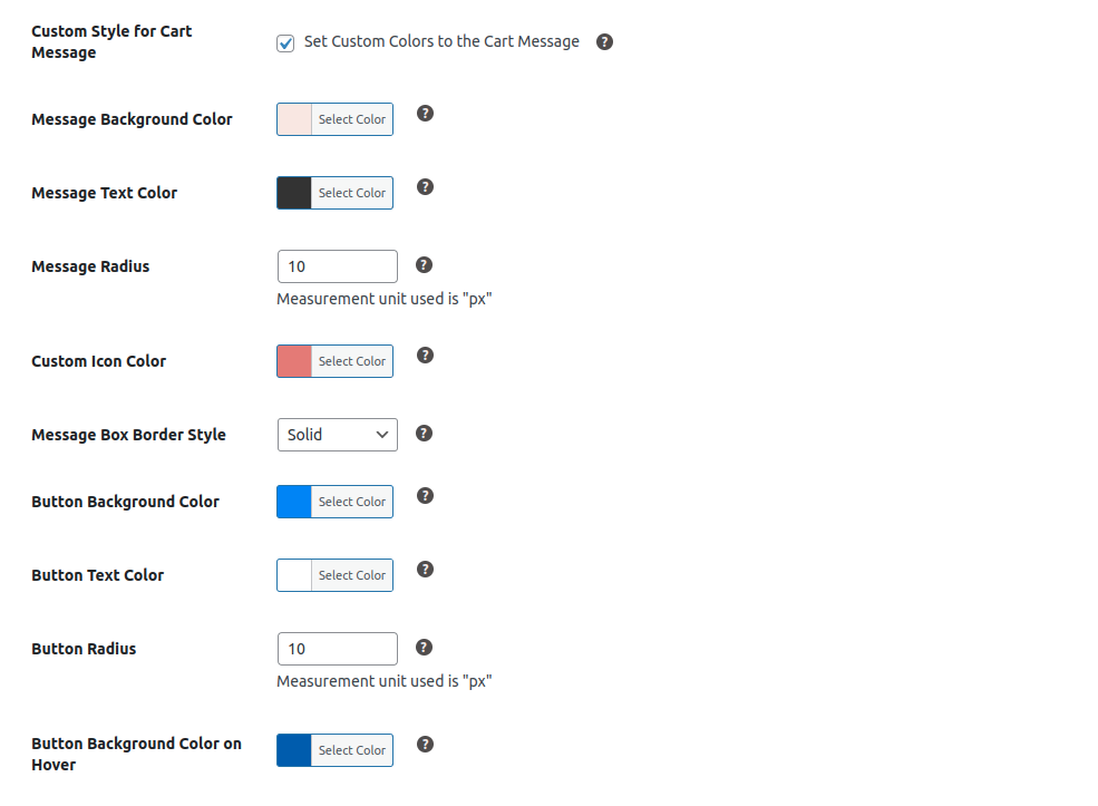 Transform your cart messages with the all-new Color Scheme Control! Choose from 10 predefined styles or tweak them to perfection. Feeling creative? Build your own color scheme from scratch and ensure every cart message matches your store’s aesthetic seamlessly.