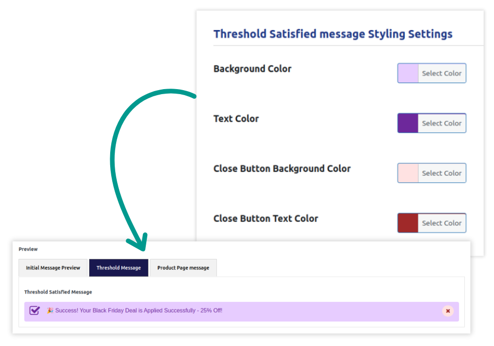 Dictate the visual theme of your cart messages and icons with customizable color schemes. Set the tone of your store’s messaging to match your brand’s aesthetic, creating a cohesive and engaging shopping experience.