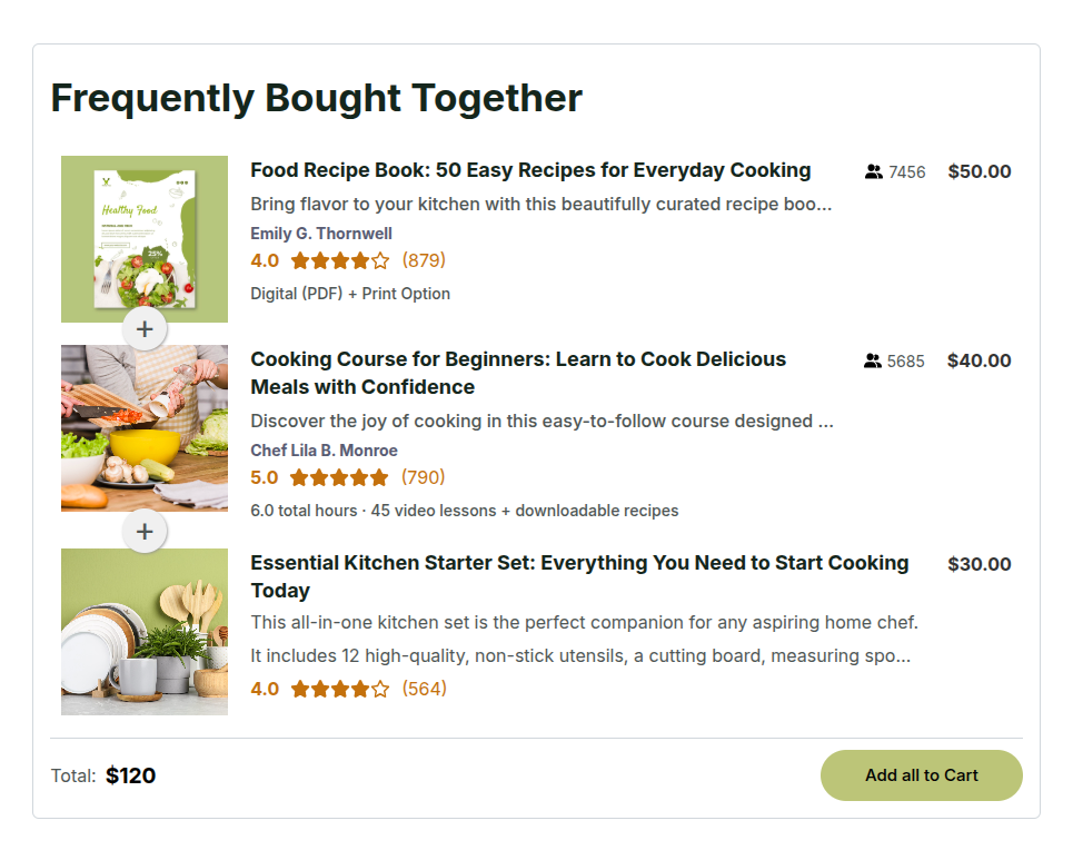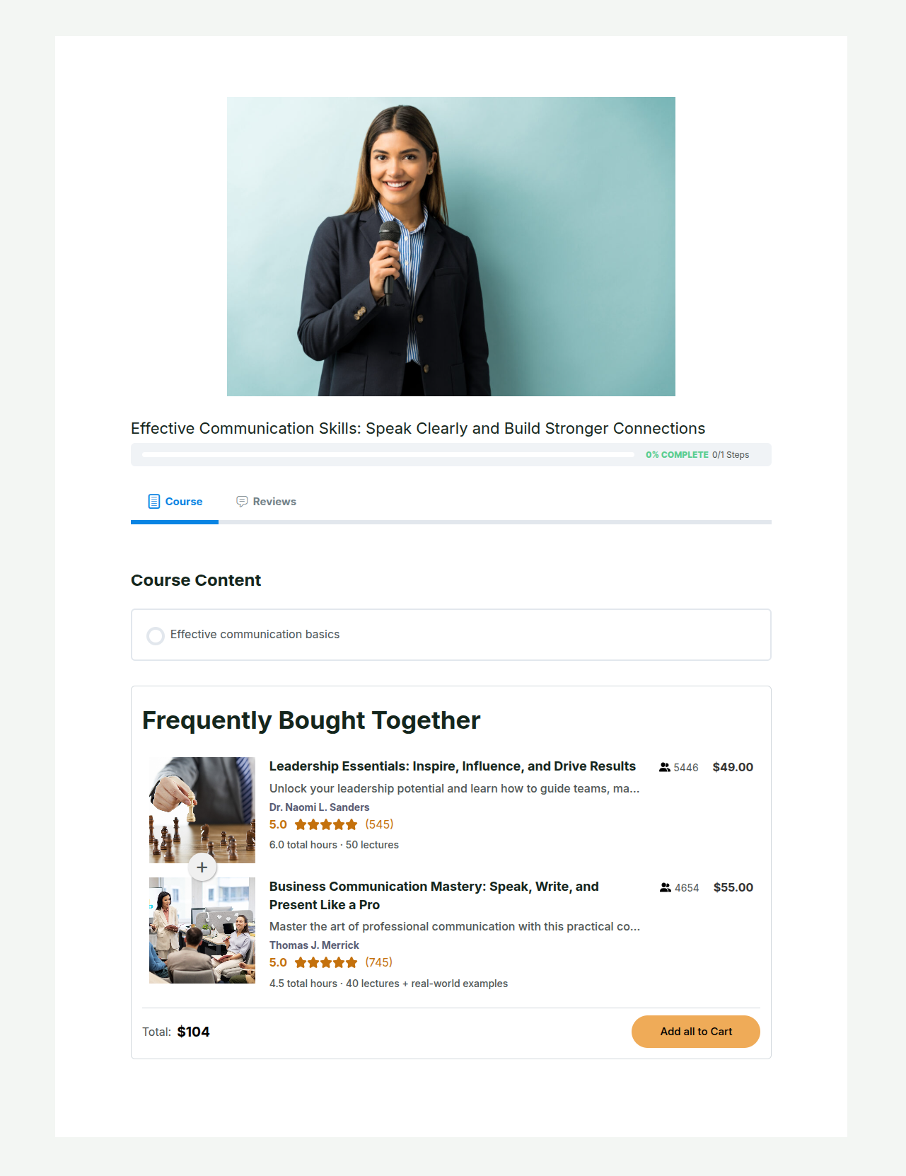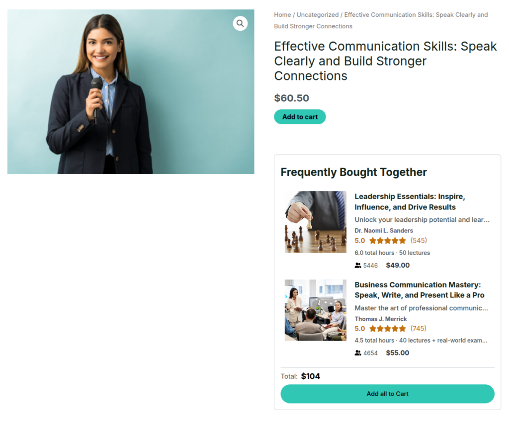 By bundling courses with related products, the frequently bought together plugin encourages students to purchase more in a single transaction.