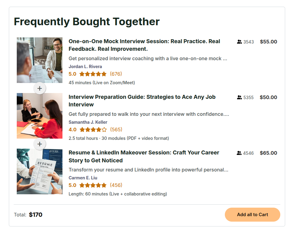 The ‘Frequently Bought Together’ section provides curated recommendations for students, simplifying their decision-making process.
