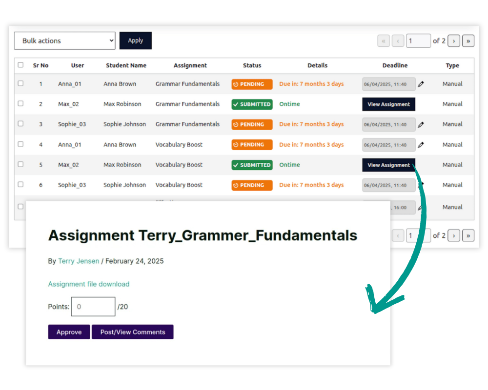 This streamlined LearnDash assignment management saves valuable time, allowing you to quickly update deadlines for multiple students at once, boosting productivity.