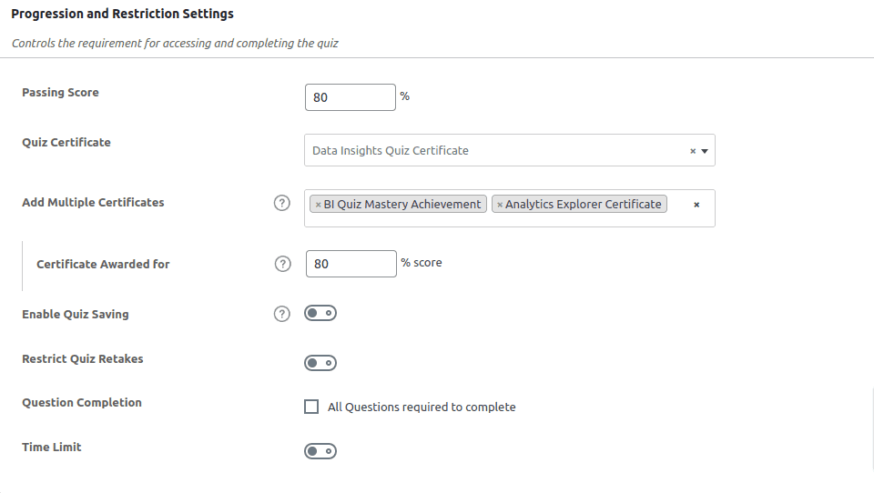 With the default LearnDash setup, it’s like offering just one certificate for your entire cooking course. It’s like saying, “Here’s your diploma for everything you’ve learned, from making soufflés to sizzling stir-fries.”