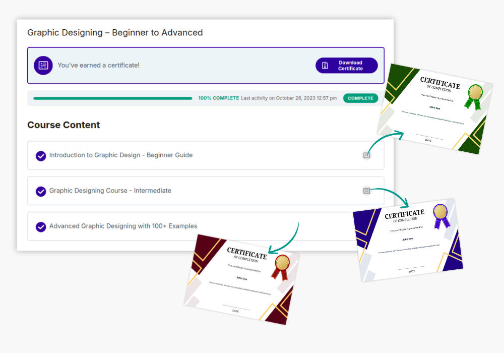 Picture this: You run an e-learning website, and one of your courses is all about cooking. Now, your students aren’t just learning one recipe; they’re mastering an entire culinary journey. Each chapter in the course represents a unique skill, from baking to grilling, and every skill deserves its own certificate of achievement.